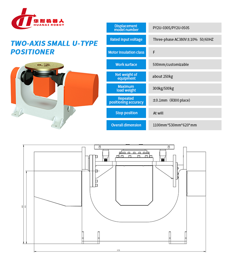 Dual axis small U-shaped positioner