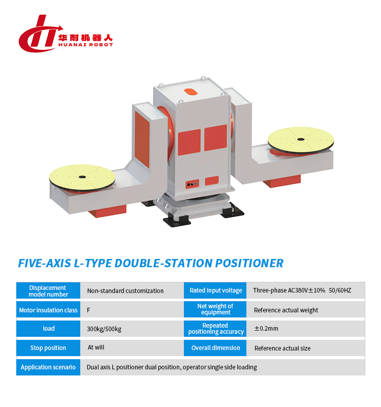 Five axis L-shaped dual station positioner